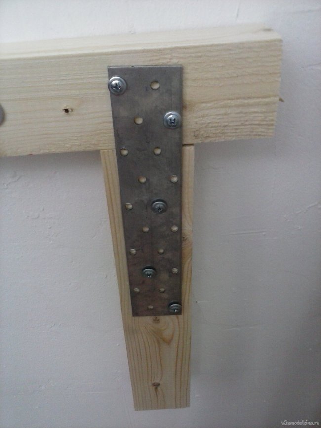 Отмечаем на стене, делаем отверстия и закрепляем. Аналогично устанавливаем бруски длиной 30 см, но перпендикулярно бруску длиной 80 см. В итоге получаем: