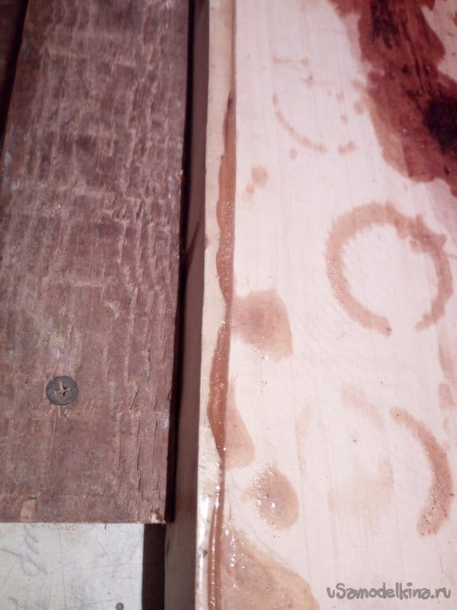 Далее, по всему периметру заготовки прочертил линию, которая обозначает толщину бортиков подноса. Заготовку поместил на поверхность для дальнейшей обработки и по краям тщательно ее зафиксировал. Это необходимо чтобы во время работы фрезерным станком заготовка сохраняла свое положение и не гуляла по столу. Высверлил в обрабатываемой поверхности отверстие в которое будет вставлена фреза для вырезания контура. Приступил к работе. Не обошлось без косяков. Дело в том, что на момент начального изготовления данной самоделки, у меня не было практически никакого реального опыта работы с фрезерным станком. Ограничивалось тем, что мог убрать фаску и еще некоторые незначительные операции. О том, чтобы сделать трафарет, повторяющий контуры подноса, я и не подумал на тот момент. Поэтому в некоторый момент "что-то пошло не так". Дрогнула рука и фреза вышла за контуры очерченных границ, сильно срезав край бортика в некоторых местах. Да и сам контур, который был вырезан, далеко от ровного реза. Это все прекрасно вы увидите на фотографиях. Чтобы выбрать древесину из основной части поддона, была использована более крупная фреза. Естественно и тут не обошлось без небольших косяков. Так как никаких направляющих мною не было сделано, то подошва станка скользила по самой поверхности заготовки. Когда работа подходила к концу, опоры для подошвы практически не осталось и фреза кое-где зарылась более глубоко чем было нужно. Приходилось работать держа станок на весу, что так же не придало качества проделанной работе. Но выкинуть заготовку, на которую было потрачено много сил и времени у меня не поднялась рука. Продолжил работу с тем что сделал. Стамеской сравнял края, естественно где это было возможно. Орбитальной шлифмашинкой выровнял дно. Края решил восстанавливать все той же эпоксидной смолой. Установил бортики из оргстекла, закрепил по краям чтобы не выдавила смола и проклеил клеевым пистолетом. Залил смолой и стал ждать пока все высохнет. Так же залил смолой и дно подноса, чтобы выровнять "пол" и трещины, которые стали видны после фрезеровки. Вот что получилось в последствии проведенных манипуляций со смолой.