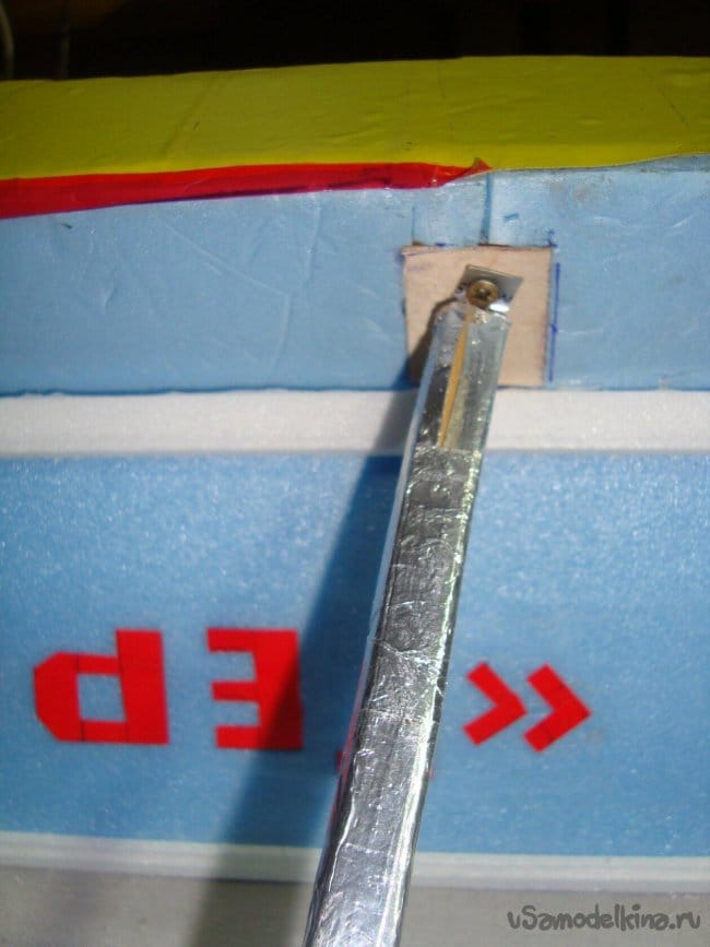 Руль высоты сделал из двух слоёв подложки. Навесил на бумажный, малярный скотч, с последующей обтяжкой цветным скотчем.