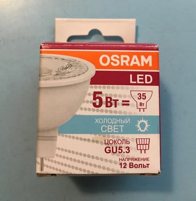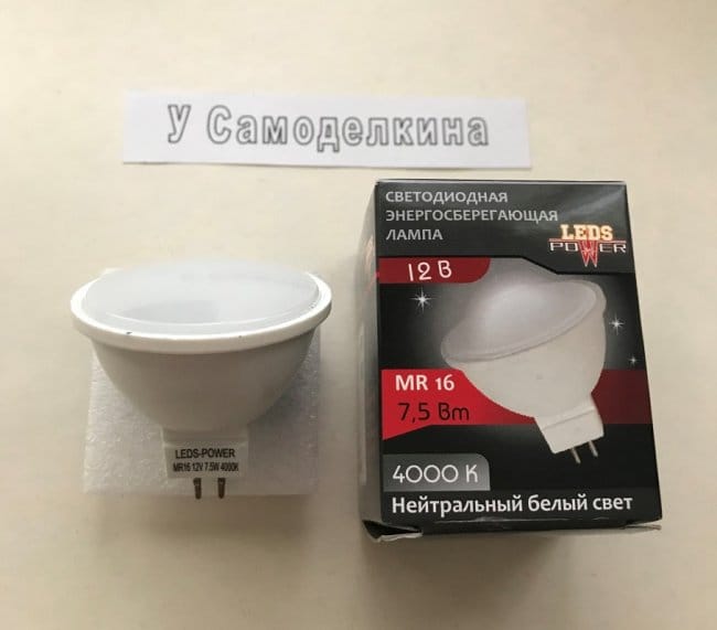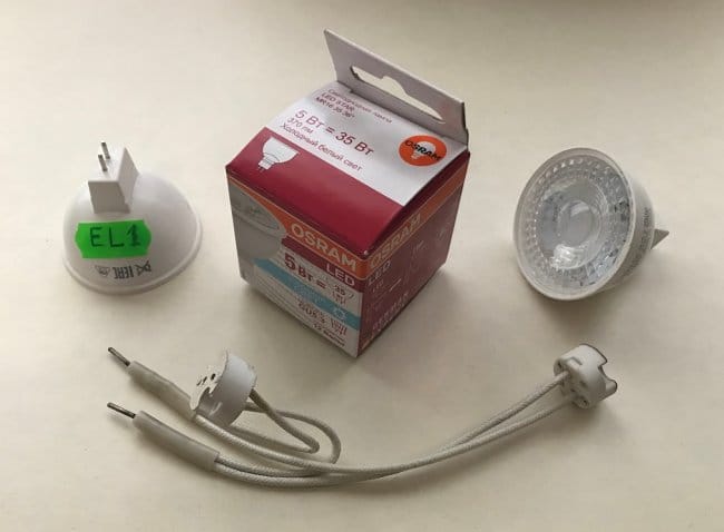 - светодиодной лампы EL1 белого цвета свечения LED STAR MR16 35 36º с рабочим напряжением +12 Вольт и мощностью 5 Вт;