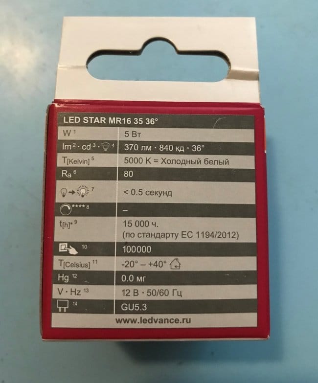 Возможно, при поиске LED лампы EL1, заложенной в схему, вам помогут фотографии её упаковки, выполненные со всех сторон. Каждое фото содержит важную информацию о лампе, поэтому рекомендуется, как минимум, их прочитать.
