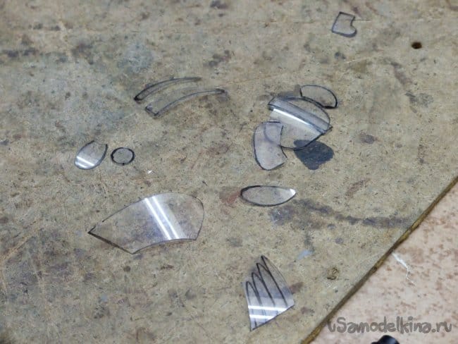 Для переноса контуров деталей на заготовки – цветное стекло, применяются шаблоны из нетонкой прозрачной пленки (Фото 3). Пленка слишком толстая тоже нехороша – трудно вырезать ножницами. Ориентироваться можно на толщину 0,25…0,4 мм. В сложной работе все детали заранее пронумеровываются на картоне, эти номера переносятся на шаблоны спиртовым фломастером.