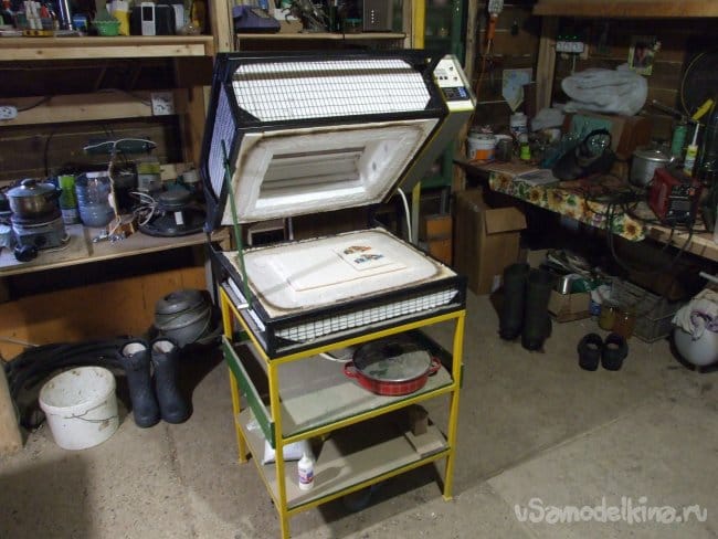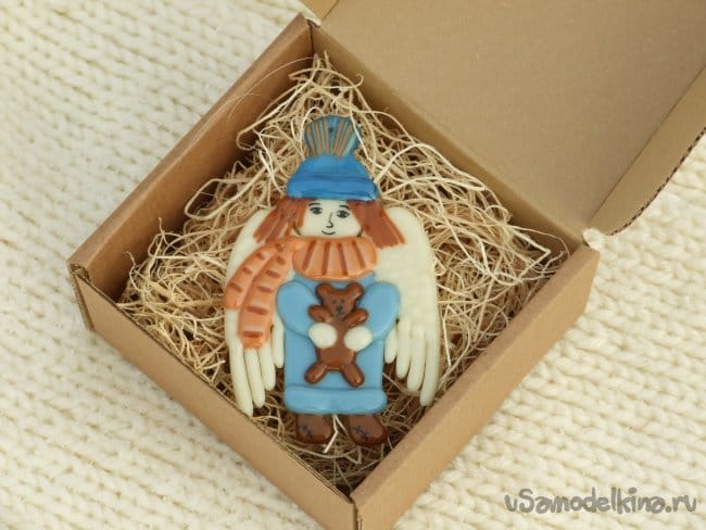 После извлечения из печи (Фото 20) фигурки отчищаются и отмываются с жесткой щеткой от прилипшего сзади гипса, алмазным инструментом – на шлифмашине и надфилями притупляются возможные острые кромки. Ёлочные игрушки снабжаются веревочками, упаковываются.