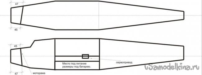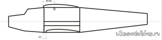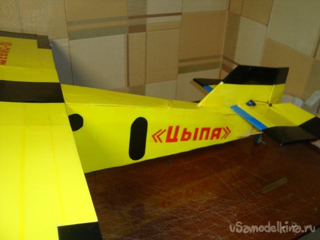 Точно такую же модель сделал мой друг Сергей, он уже облетал свою модель, а я заболел. Модель у него зелёная, как лягушонок и концы крыльев он сделал закруглёнными.