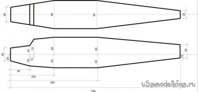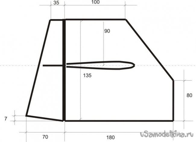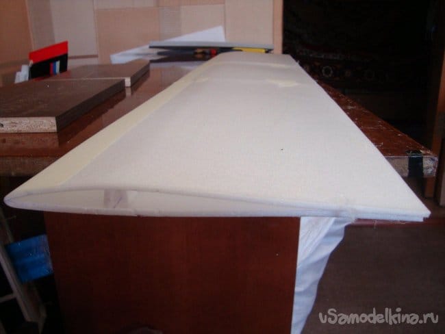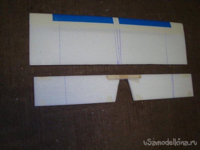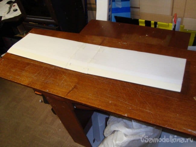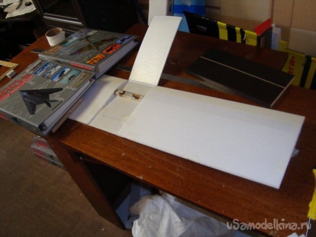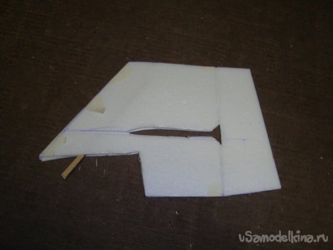Стабилизатор склеил из двух слоёв потолочной плитки, для прочности и создания профиля, так же использовал кусочек деревянной реечки , сечением 4 Х 4 мм.