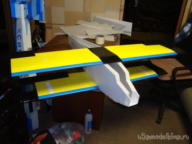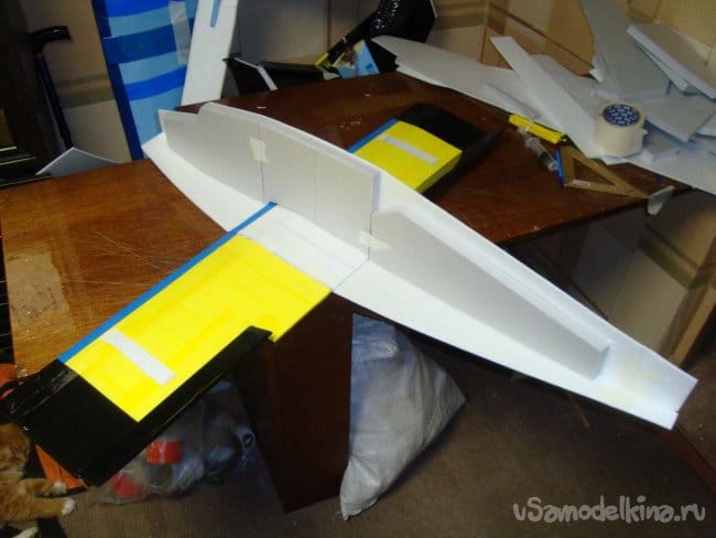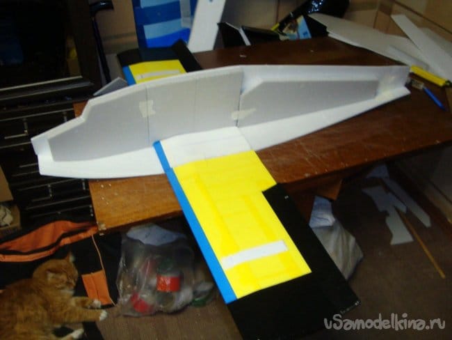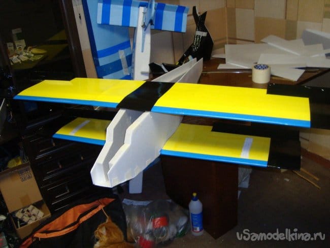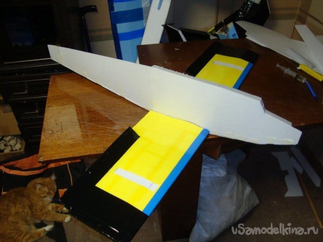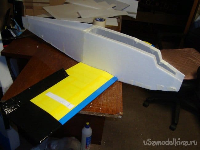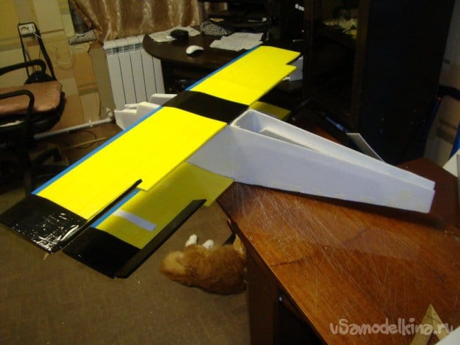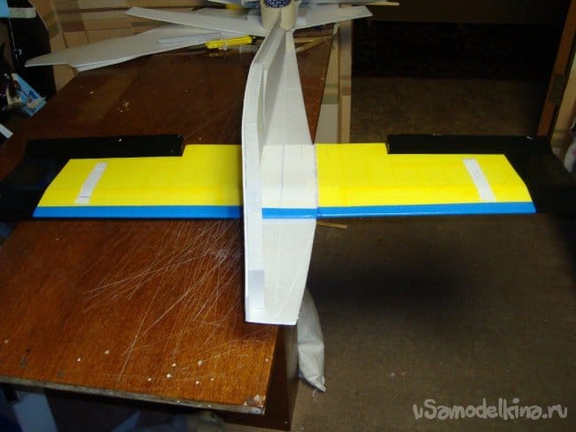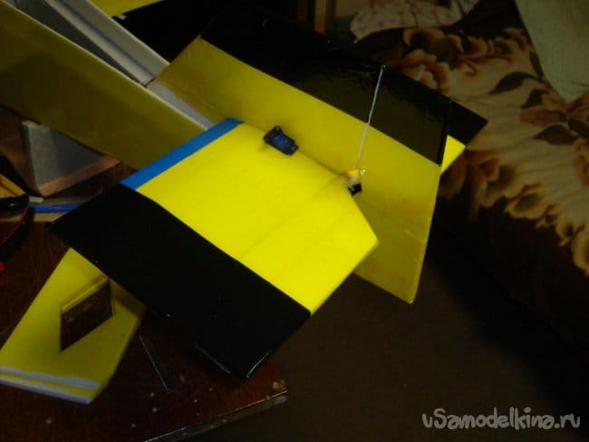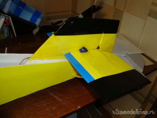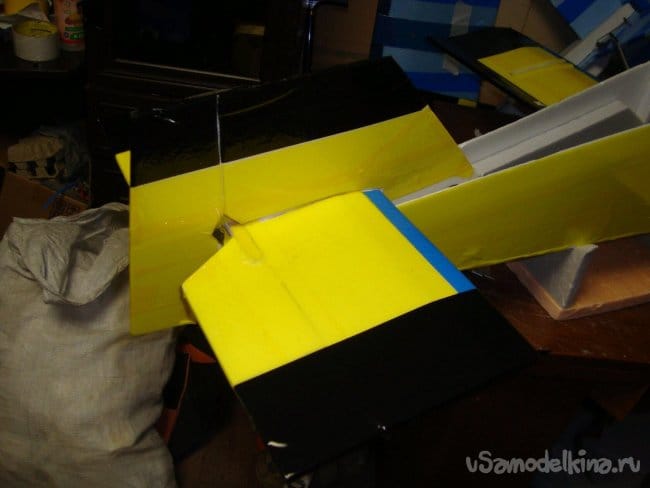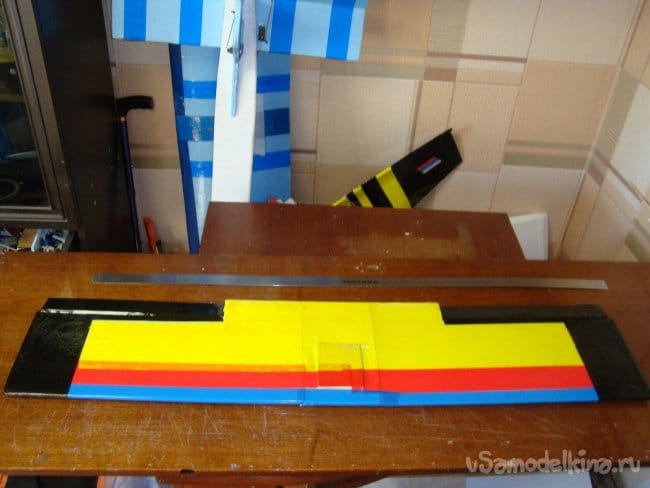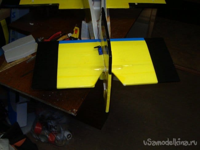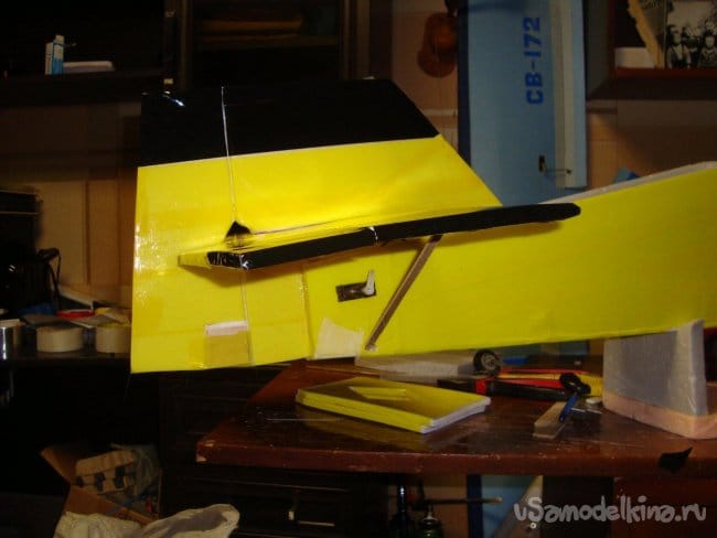 Обтянул киль и стабилизатор цветным скотчем, после чего смонтировал на своё место.