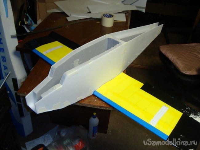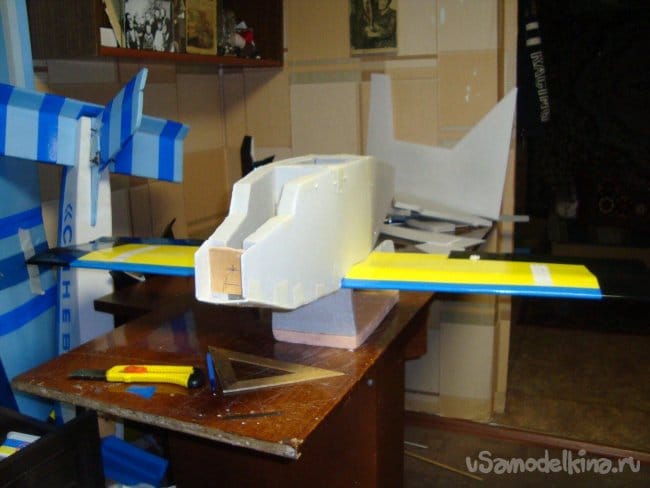 Фюзеляж усилен изнутри пластинами из листового утеплителя Пеноплекс» . толщиной 20 мм.