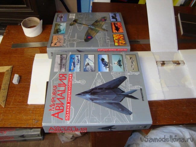 Вначале смонтировал левую консоль крыла. В качестве груза использовал папки с полной энциклопедией Мировая авиация.