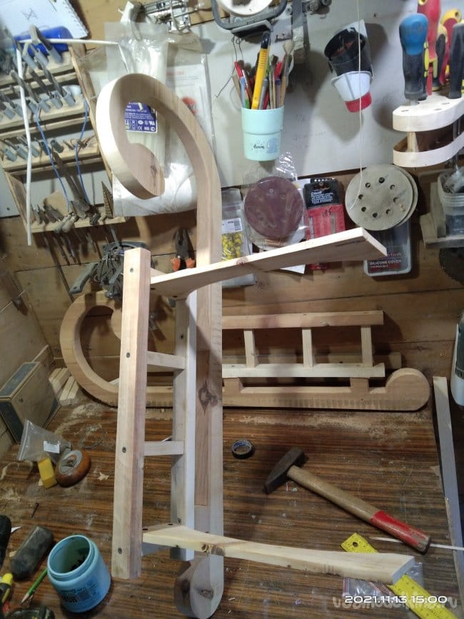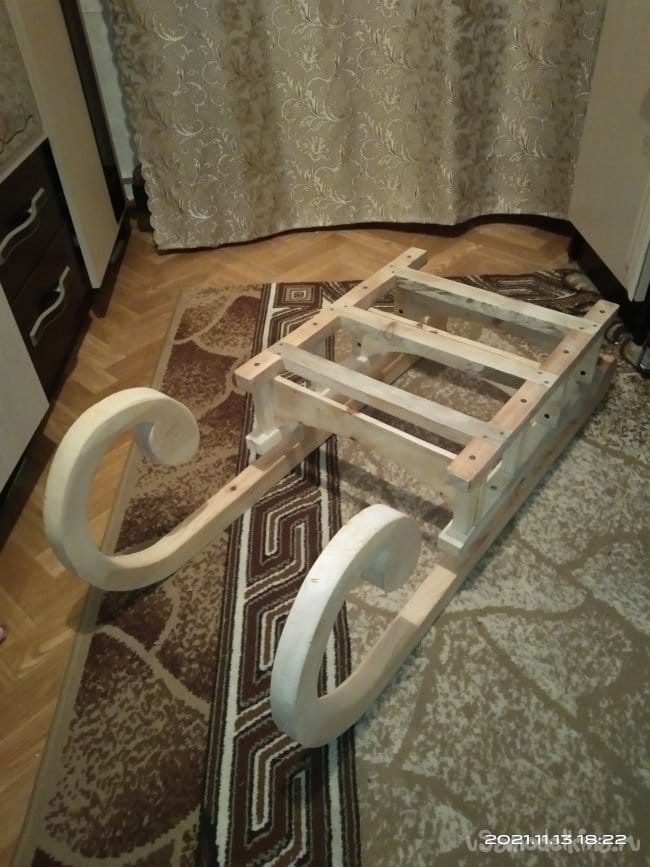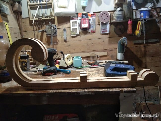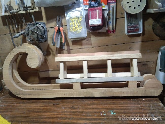 В этот год мы решили провести фотосессию на природе в зимний период времени, незадолго до Нового года. Для этого я решил изготовить деревянные санки. Полазив по интернету я так и не смог найти такой модели, которая бы мне понравилась. Есть много таких, которые для меня не представляли никакого интереса в связи со своей простотой. Для меня же главное в такой работе именно сам процесс создания изделия. Чем более он труден, тем для меня он представляет больший интерес. Ну и соответственно сам конечный результат должен быть таким, каких нельзя найти в интернете, т.е. полная авторская идея и исполнение.
