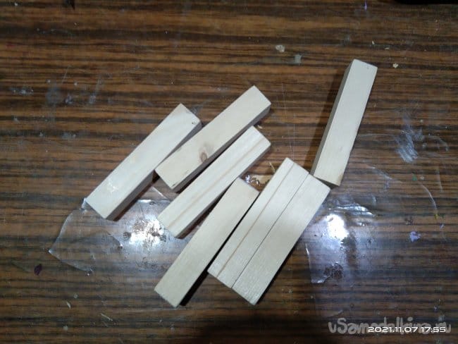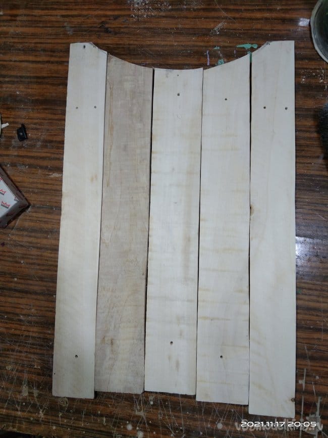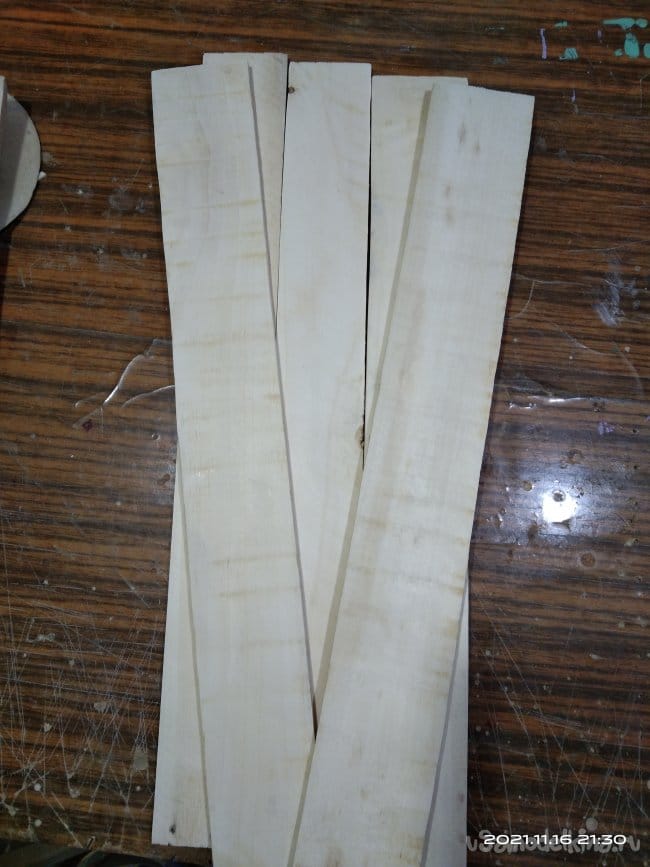 По окончанию процесса кипячения реек она несколько увеличились в размерах. Та часть, которая была в воде, разбухла. Решив что этого достаточно начал гнуть. Итог оказался плачевным — ни одна рейка не была согнута. Все сломались в разных местах. То ли недостаточно были распарены, то ли, к чему я склоняюсь больше всего, была неподходящая древесина.