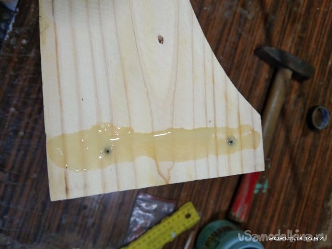 нанес клей. В итоге получаются две вот такие заготовки для санок. Это основа всей конструкции. Именно на них будет приходиться основная нагрузка сидящего тела.