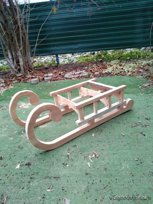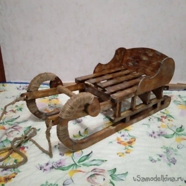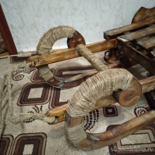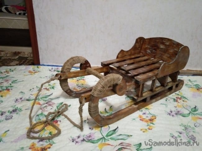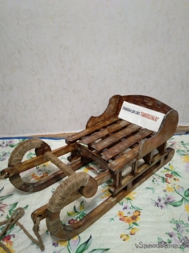 Данные санки — это не только декоративное изделие, которое сгодится только на одну фотосессию. Их с легкостью можно использовать и по прямому назначению, т.е. кататься на них. При правильной и бережной эксплуатации они прослужат не один год. Санки получились достаточно крепкими. Я сам садился в них и ёрзал. Стоят как литые, ничего не разболталось и не сломалось. Так что если кому-то из читающих идея и форма пришлась по вкусу, пользуйтесь! На этом я завершаю свою статью. Желаю всем самого наилучшего!