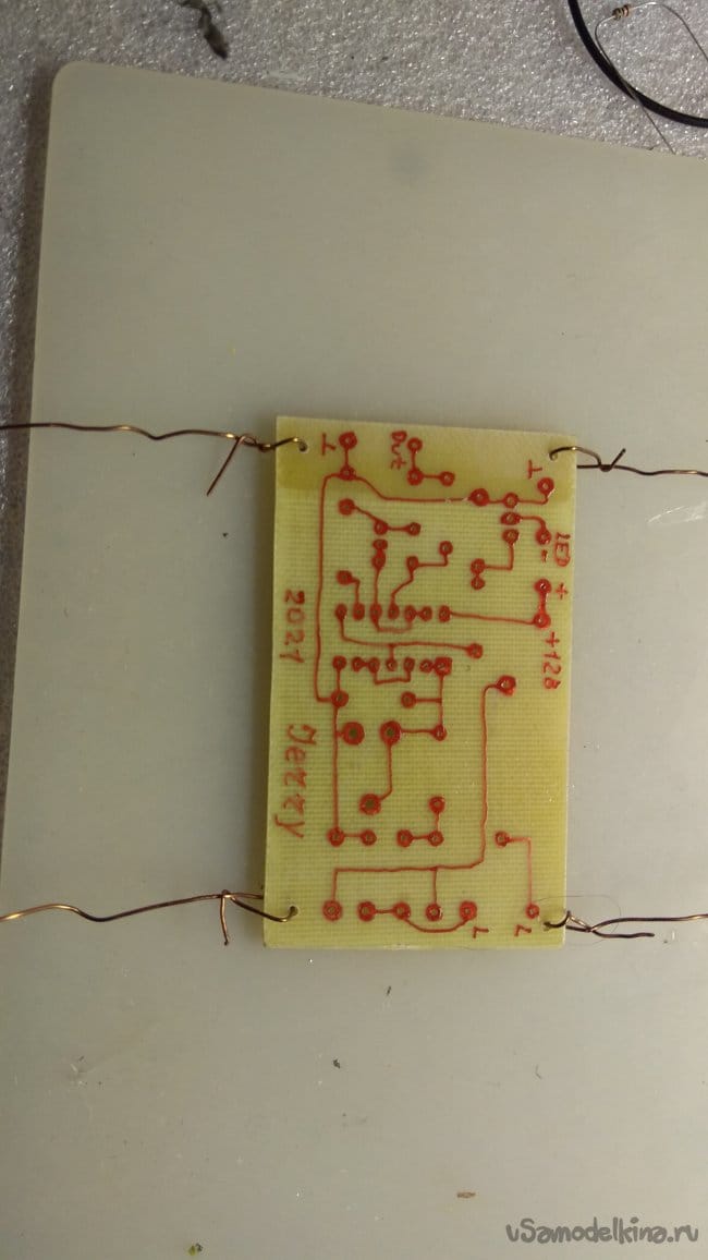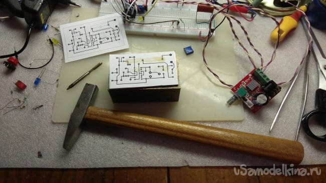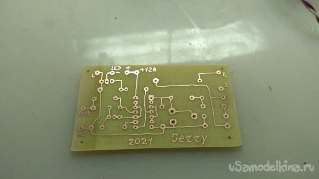 Была мысль собрать все навесным монтажом на микросхеме, но мне захотелось сделать красиво. Вспомнил старые времена, нарисовал плату.