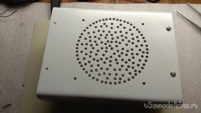 Займемся установкой динамика. Приложил динамик к корпусу и просверлил крепежные отверстия.