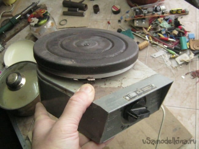При слишком сильном или неравномерном нагреве смолы она начинает гореть, дымить. При наличии обычной бытовой электрической плитки или открытого огня, лабораторная практика рекомендует использовать песчаную баню. В моем распоряжении имеется специальная маломощная электроплитка для лабораторного применения (Фото 4, 5), её я использую без таких ухищрений, «в чистом виде».