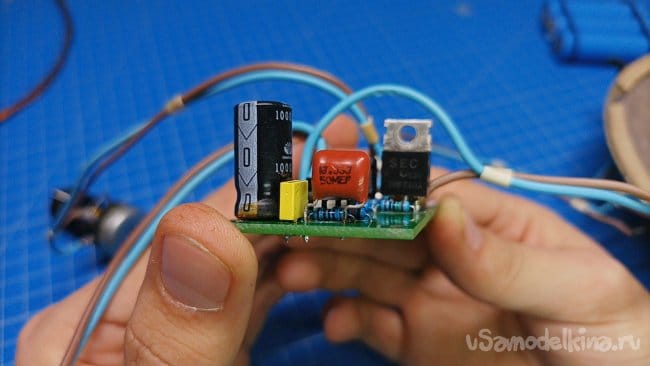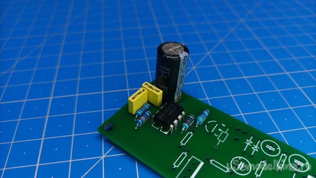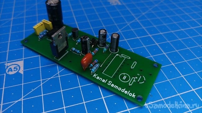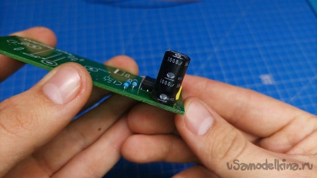 Также я сразу поставлю 1 электролит по входу который будет фильтровать все помехи, конечно если они будут, ёмкость должна быть 2200мкф, но такой конденсатор великоват для моей платы, поэтому я поставлю электролит на 1000мкф, думаю этого хватит.