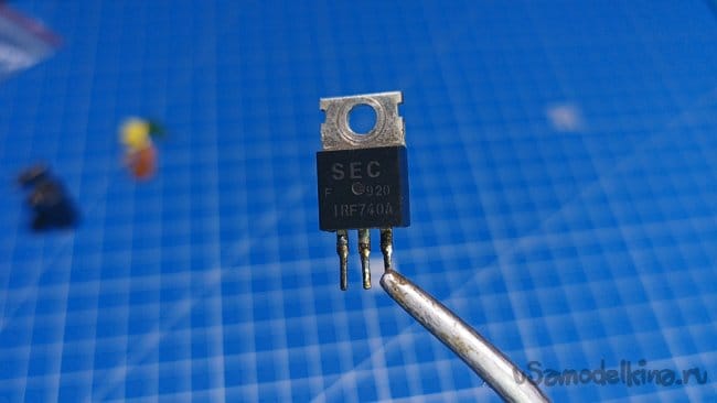 Полевой транзистор должен быть рассчитан на довольно высокое напряжение, идеально подходит IRF740, зачем нужно брать высоковольтный транзистор в низковольтную схему я покажу чуточку позже.
