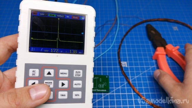 На данном этапе это всё выглядит так, снова подаем питание на схему. К катушке я подключил осла и посмотрим что там творится.