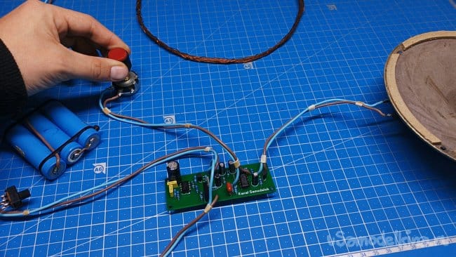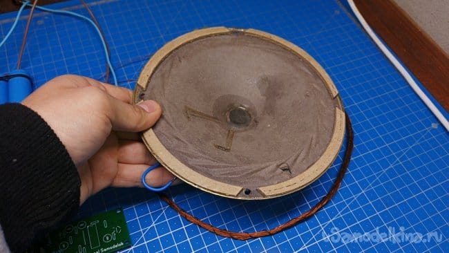 Если мы внутрь катушки поставим динамик то услышим гудение, если у вас нету осла то вы таким способом можете проверить работоспособность данной части схемы. И да, чтобы гудение было сильнее я взял и закоротил катушку динамика и гудеть стало заметно сильнее. С передающей частью покончили, начинаем собирать приемную часть.
