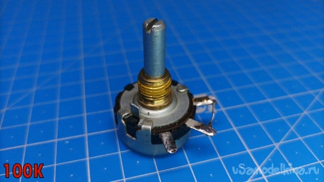 Настраивать чувствительность металлоискателя будем советским переменным резистором, на схеме нарисована 2 резистора которые соединены последовательно но я попробую поставить только 1 резистор на 100к. Посмотрим что будет.