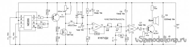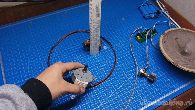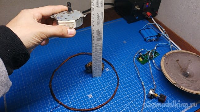 Ну и также пробовал менять чувствительность схемы, на маленькой чувствительности мне этот моторчик пришлось подносить вплотную к катушке и только тогда из динамика пошел звук.