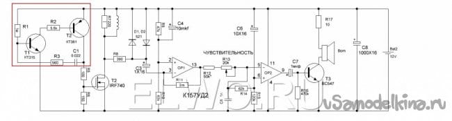 Принимающая часть спаяна на микросхеме К157УД2, эта двух канальный операционный усилитель. Как я понял эта микросхема в дефиците, а может и нет, но лично у меня этих микросхем почти что нет. Даже в местом "радиомагазине" её там нету.