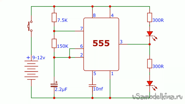 Передающая часть сделана на микросхеме NE555 которая генерирует частоту.