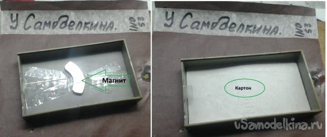 Вместе с магнитом от HDD поместили в корпус – коробочку с прозрачной крышкой, попугаю тоже доклеили магнитик.