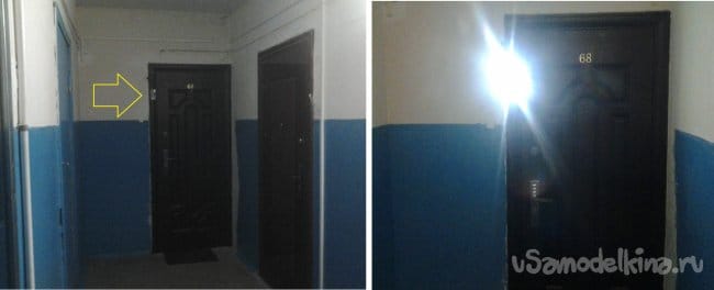 Прилепили снаружи на металлическую дверь, вернее, на обналичку.