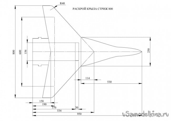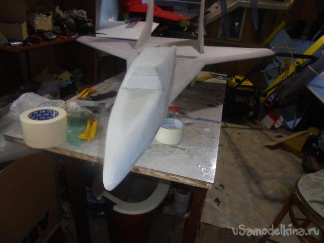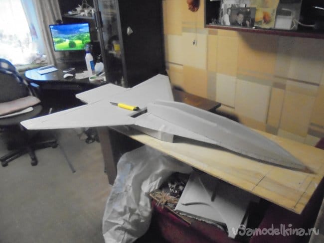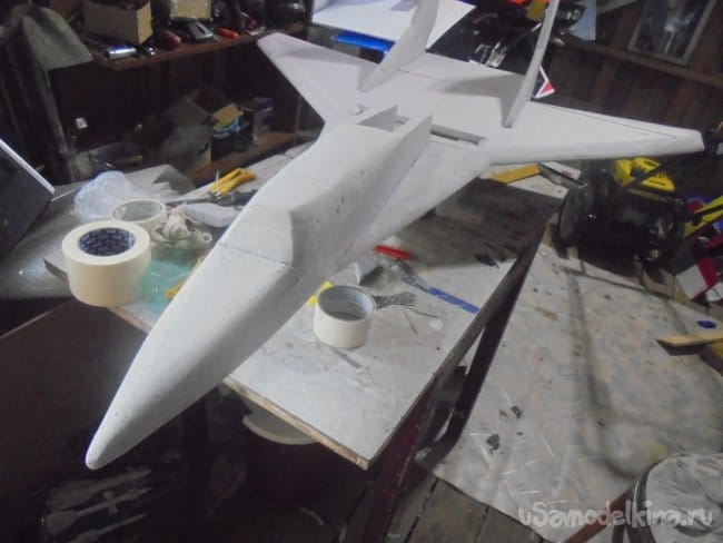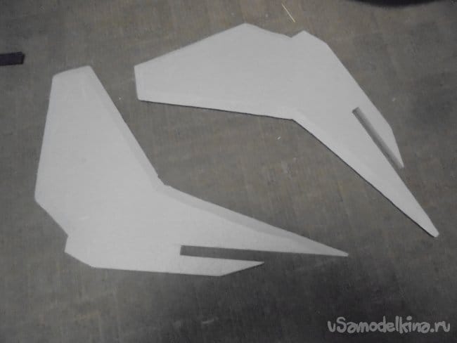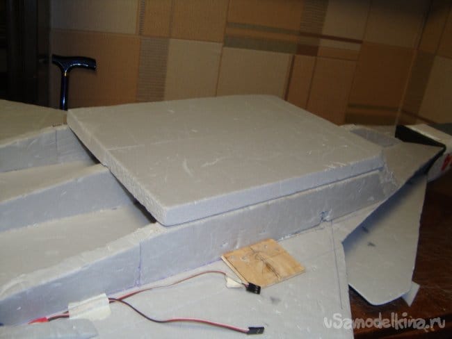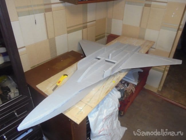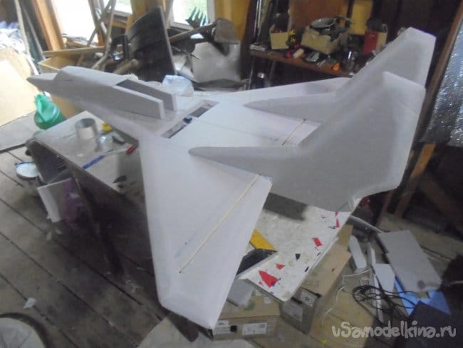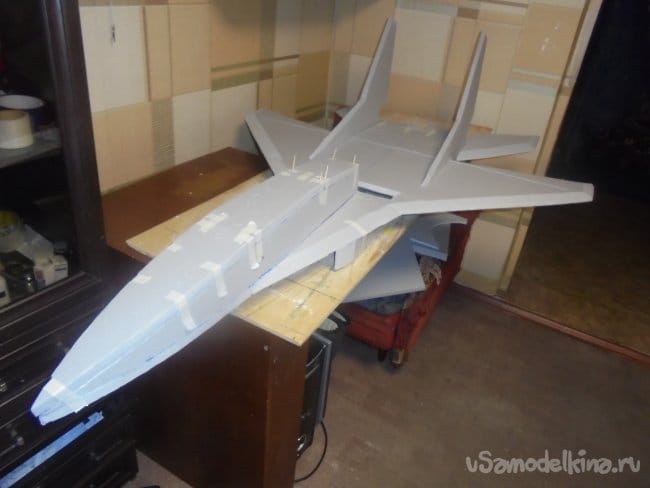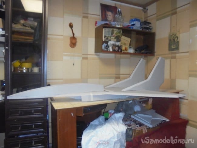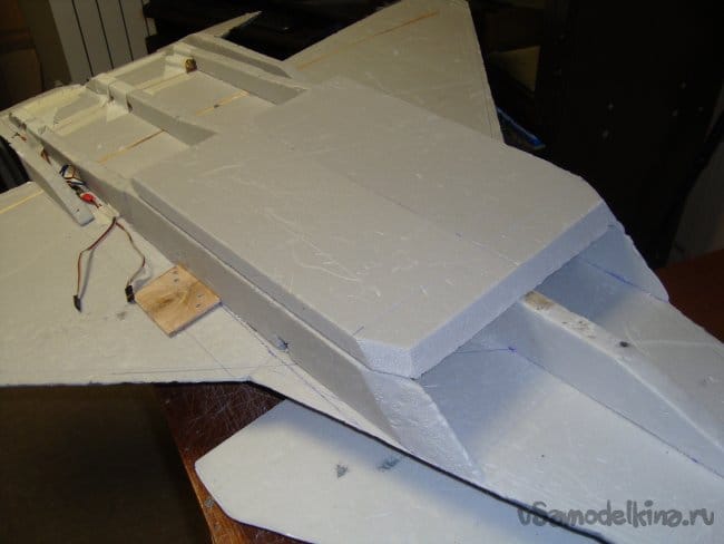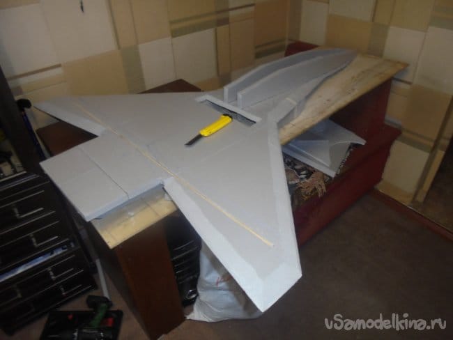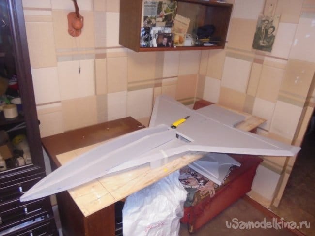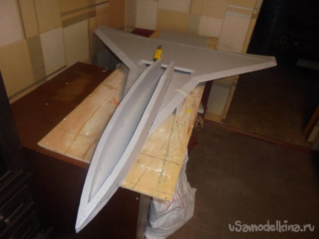 Вырезав крыло из целого листа утеплителя, подклеил спереди носовую и сзади хвостовую части.