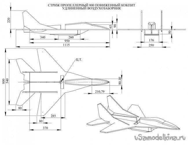Это была небольшая лёгкая авиамодель, созданная под мотор небольшой мощности и винтом малого размера.