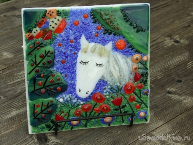 Фото 13. Панно «Лошадь белая» в сборе, перед спеканием.