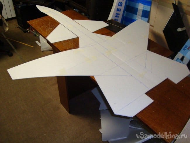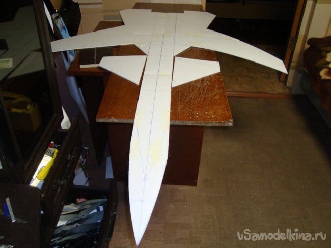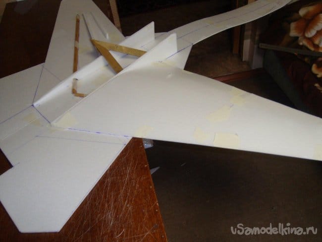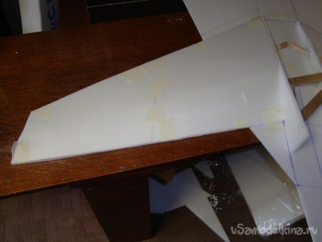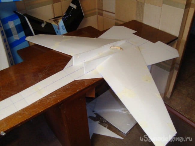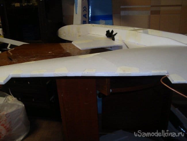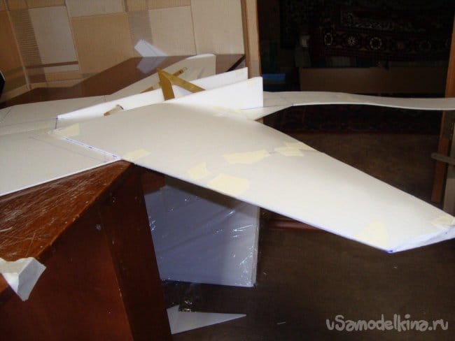 Вырезал секции основной, несущей плоскости модели и склеил их.