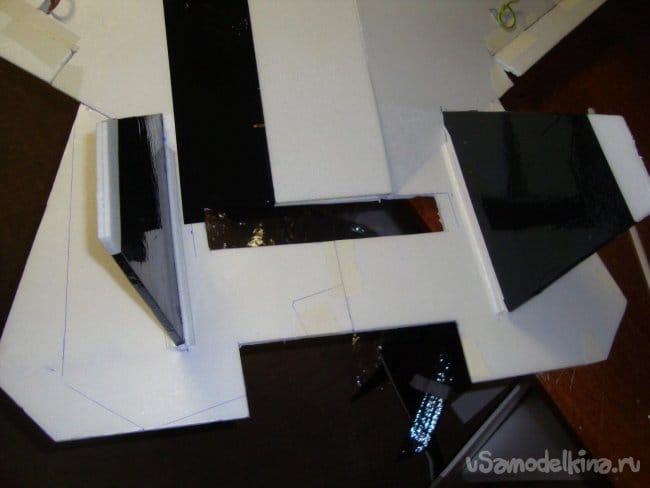 Обтянул кили чёрным скотчем. Примерил на место.
