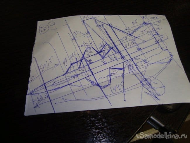 Все размеры , отдельных элементов конструкции модели переносил сразу на потолочку и вырезал.