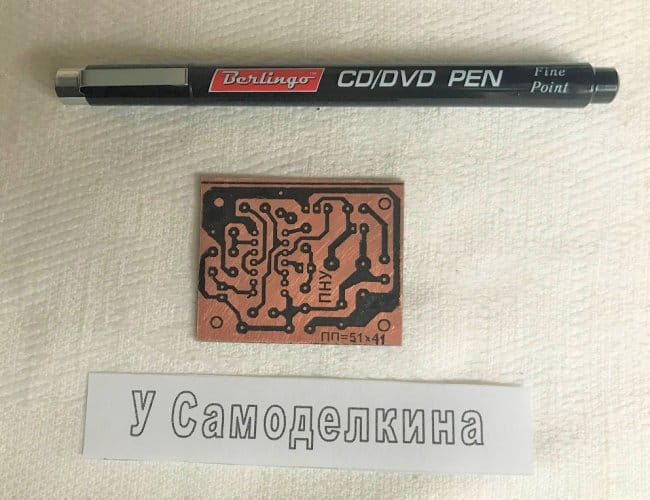 Иллюстрация новшеств будет вестись на примере изготовления ПП, имеющей размеры 51 х 41 мм. и толщину 1,2 мм. Выбор заготовки, разметка и обрезка заготовки по размерам ПП, разработка рисунка ПП, а также перенос рисунка ПП на медную сторону платы довольно подробно описан в статье МТР (Метод термопереноса рисунка). Прочитать его можно открыв файл MTR_TO, находящийся на Яндекс.Диске. Смотрите ссылку.