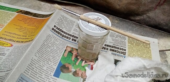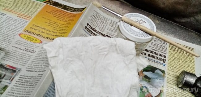 Покрывать буду кисточкой. В два слоя. После работы вытираю остатки лака с кисточка бумагой. Промываю в ацетоне и протираю еще раз. Она мне еще пригодится.