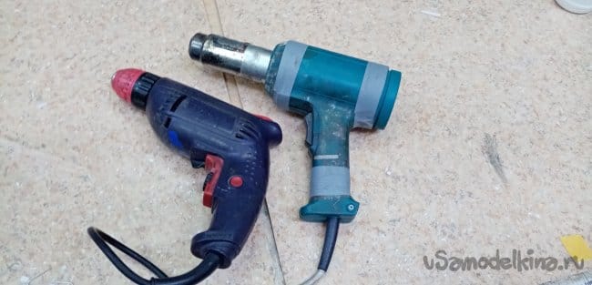 Примеряю дрель, все хорошо, вставляется-вынимается без проблем. Внутрь трубки не проваливается. Обмотал рукоятку проводом, нормально устанавливается.