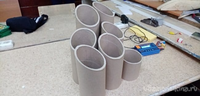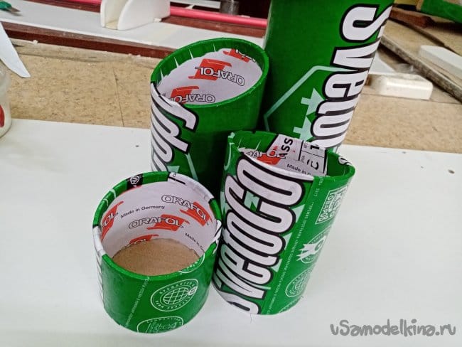 Проезжая мимо строительного магазина обнаружил картонную трубу от линолеума. Ценная вещь немедленно загружена в машину и доставлена в моделку. Как раньше такая мысля в голову не пришла. Много чего наделал из таких трубок.