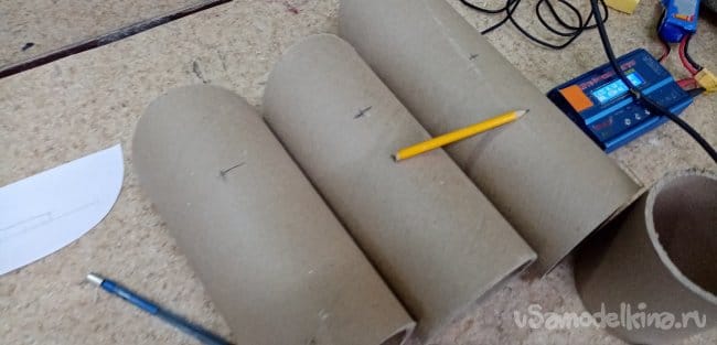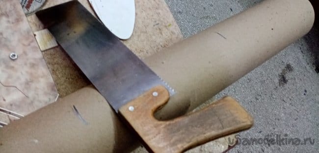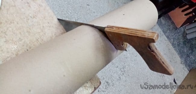 Трубочка есть, размечаю по длине и распиливаю самодельной пилкой. Мелкий зуб не слишком рвет картону. Режу наискосок, так удобнее будет извлекать инструмент. И о края трубок не будет повреждаться корпус.