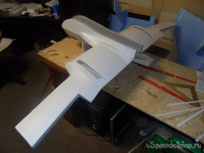 Вырезал и смонтировал кили на концах крыла, они заметно повышают аэродинамические характеристики крыла.