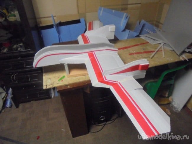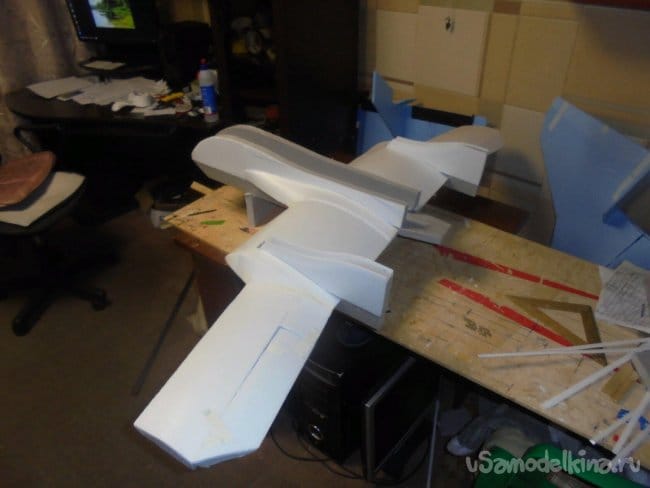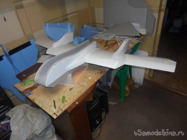 Хотел делать нижнюю секцию фюзеляжа, но так, как я уже смонтировал шасси, решил отказаться от этой затеи.