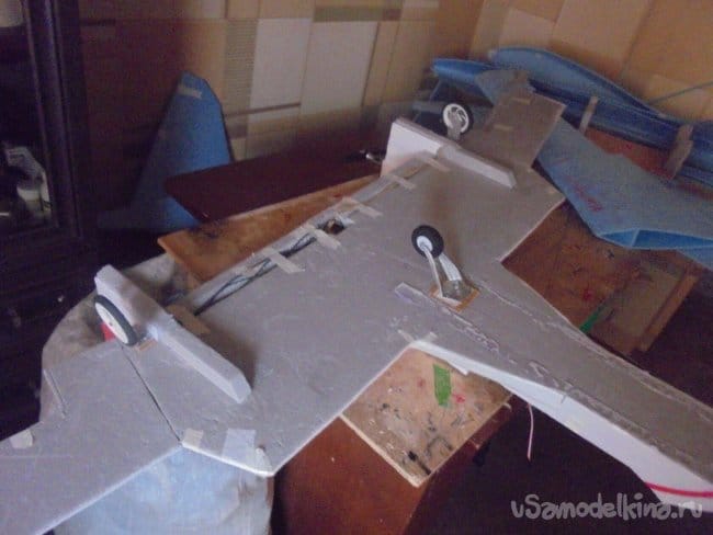 Элевоны навешены, кили смонтированы Начинаю монтировать сервомашинки
