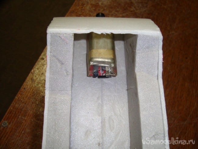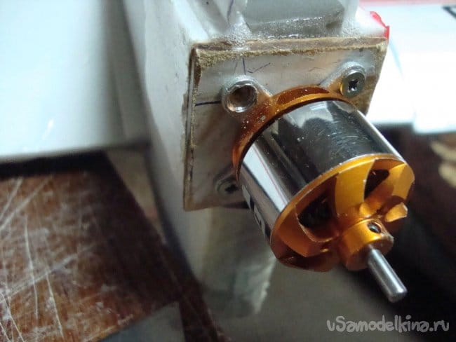 Вклеил кусочки оргалита (ДВП), толщиной 4 мм в боковые балки и смонтировал на них моторы.