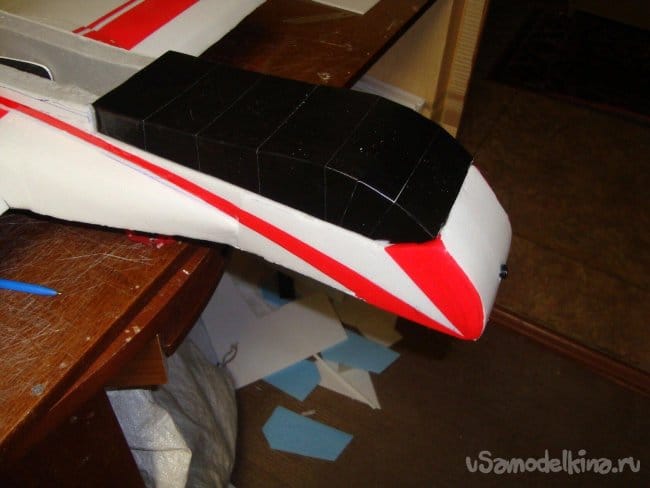 В носовой части фюзеляжа сделал отверстие для объектива видео камеры.