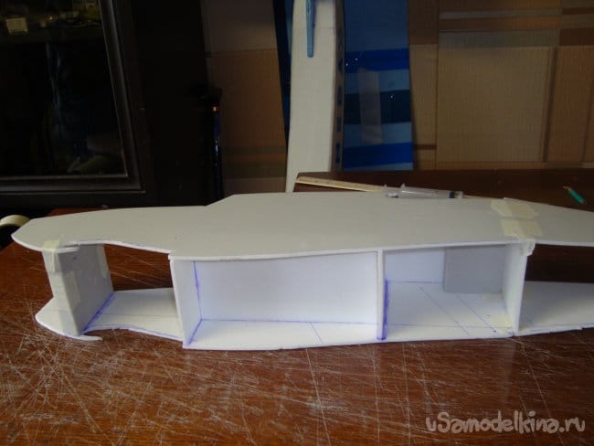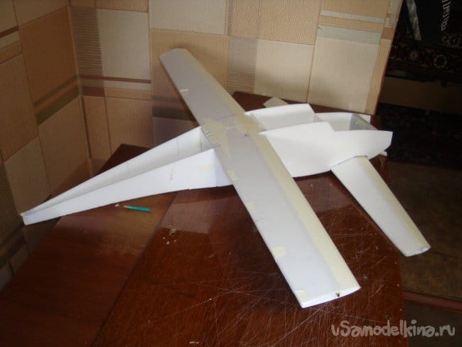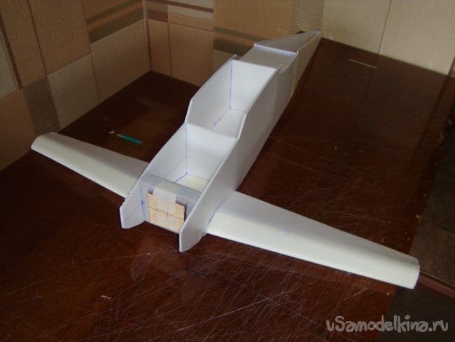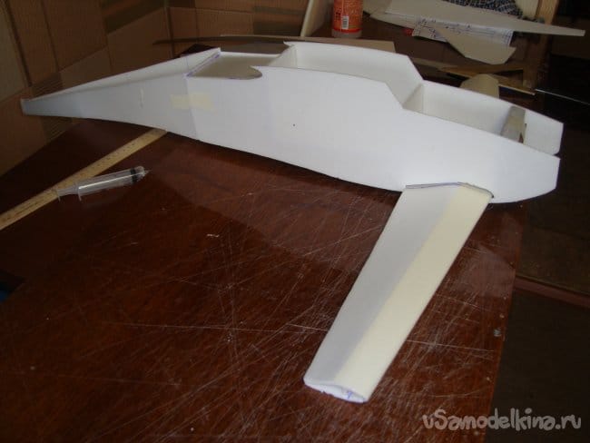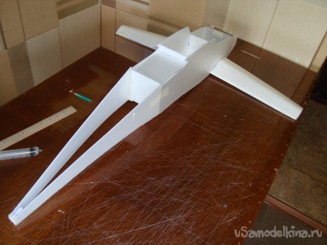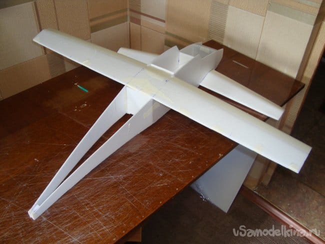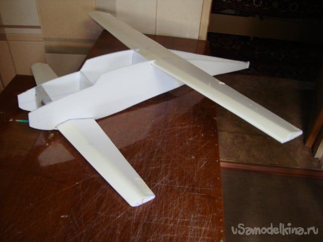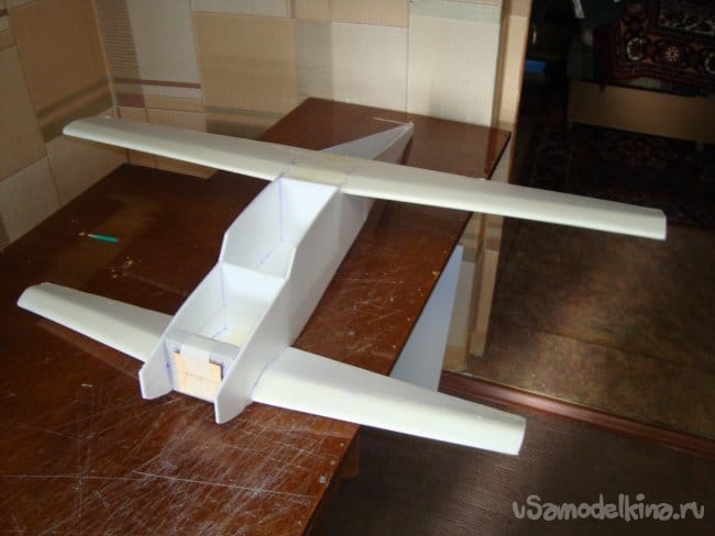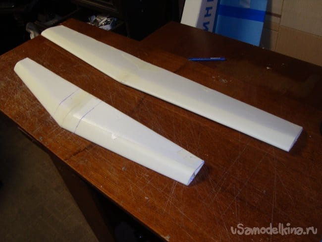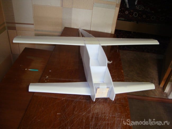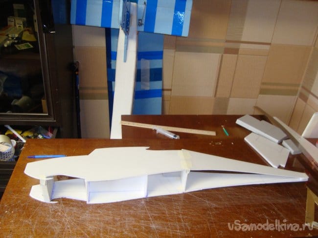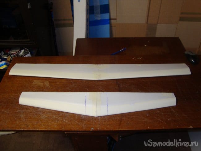 Решил сделать крылья. Оба крыла по конструкции похожи, только по размеру отличаются, и нижнее крыло имеет центральную вставку для фюзеляжа, да у одного положительный V угол, а у другого – отрицательный.