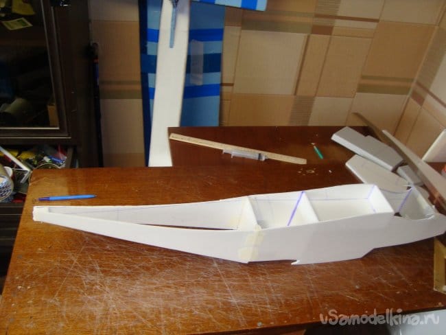 Вырезал заготовки боковых стенок фюзеляжа и внутренние перегородки. Смонтировал.