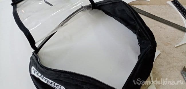 На пластике размечаю основание для будущего крепления. В качестве шаблона беру уже упоминавшийся чехол.