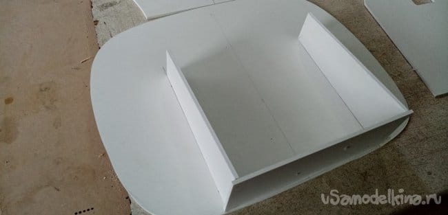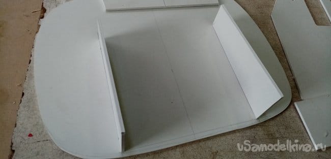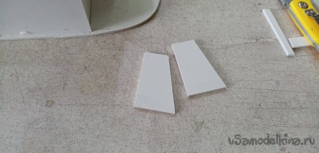 Затем вырезаю подпорки верхней части столика и приклеиваю на место.