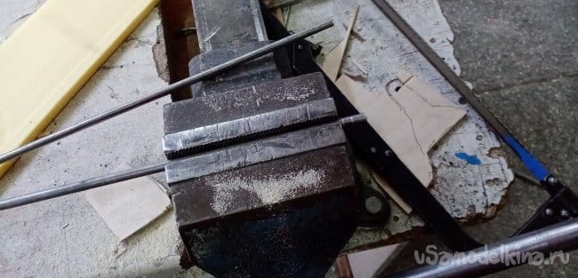 Нужно изготовить элементы крепления для ремня. «Рога» так сказать. Этот элемент буду делать из алюминиевой трубки диаметром в 6 мм. Отрезаю в размер.